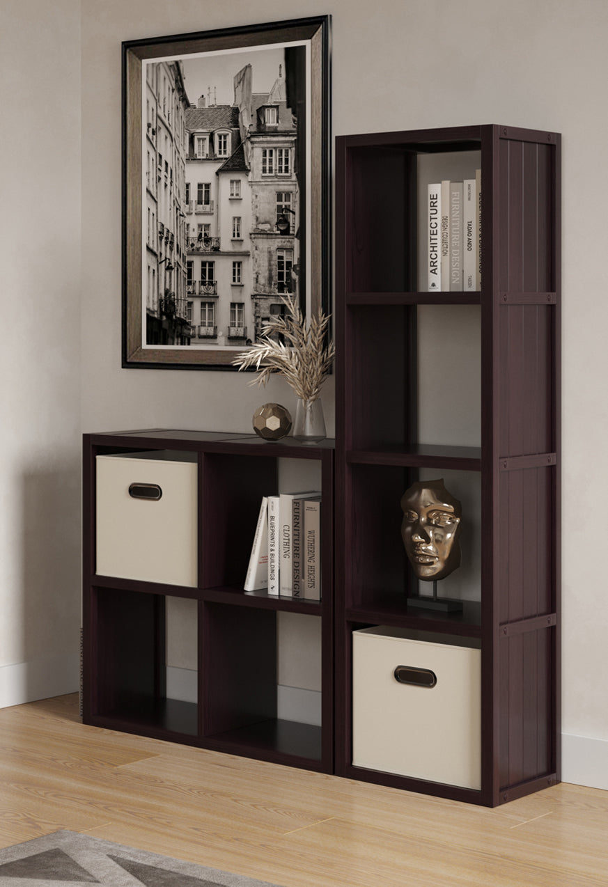 Because they are made from 100% solid wood and have a consistent design and range of finishes, you can mix and match different John Louis Home cube organizers to achieve a cohesive, built-in look that's both functional and stylish.
