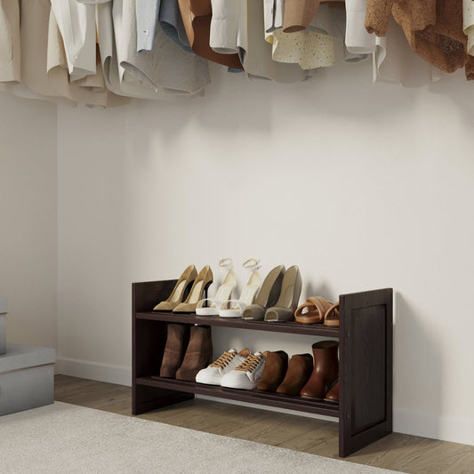 John Louis Home stackable shelving and shoe racks are great for organizing because they're solid wood and super flexible: